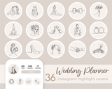 Wedding Planner - Wedding Instagram Highlight Covers Minimal Line Art IG Cover Insta Story Highlight Icons Cream Neutral Hand Drawn Wedding Highlights Stories