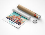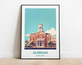 Discover Alabama and explore the world from your walls with a travel poster that brings adventure to your home. Alabama Illustration Print is a high-quality, vintage-inspired print that is a perfect addition to your collection of travel places.