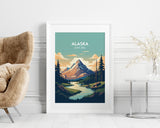 Discover Alaska and explore the world from your walls with Alaska Mountains a travel poster that brings adventure to your home. Alaska Mountains Poster is a high-quality, vintage-inspired print that is a perfect addition to your collection of travel places.
