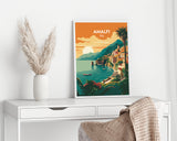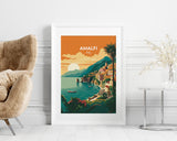 Discover Amalfi Coast and explore the world from your walls with Amalfi Coast Italy Print a travel poster that brings adventure to your home. Amalfi Coast Poster is a high-quality, vintage-inspired print that is a perfect addition to your collection of travel places.