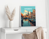 Discover Amsterdam City Print and explore the world from your walls with Amsterdam City Poster a travel poster that brings adventure to your home. Amsterdam City Illustration Print is a high-quality, vintage-inspired print that is a perfect addition to your collection of travel places.