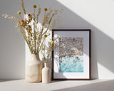 A framed poster with a smooth, white mat board that is sure to make any design look elegant and refined