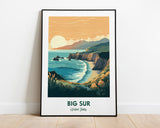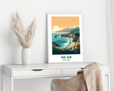 Discover Big Sur California and explore the world from your walls with a travel poster that brings adventure to your home. Big Sur California Illustration Print is a high-quality, vintage-inspired print that is a perfect addition to your collection of travel places.