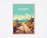 Discover California Desert Poster and explore the world from your walls with California Desert Print a travel poster that brings adventure to your home. California Desert Illustration print is a high-quality, vintage-inspired print that is a perfect addition to your collection of travel places.