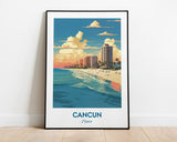 Discover Cancun Mexico and explore the world from your walls with a travel poster that brings adventure to your home. Cancun City Mexico Illustration Print is a high-quality, vintage-inspired print that is a perfect addition to your collection of travel places.