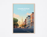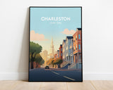 Discover Charleston City Print and explore the world from your walls with Charleston South Carolina City Illustration Poster a travel poster that brings adventure to your home. Charleston South Carolina Print is a high-quality, vintage-inspired print that is a perfect addition to your collection of travel places.