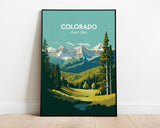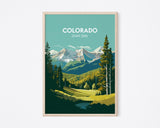 Discover Colorado Mountains Print and explore the world from your walls with Colorado Mountains Poster a travel poster that brings adventure to your home. Colorado Mountains Illustration Print is a high-quality, vintage-inspired print that is a perfect addition to your collection of travel places.