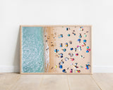 People Beach Umbrellas, Aerial Beach Print, Ocean Waves Art, Summer Vibes Wall Decor Art Print