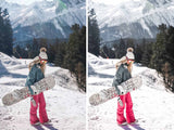 These winter presets were specifically developed for winter sports photos to enhance the cold winter vibe and make your colors pop. Discover WINTER SPORTS Lightroom Presets. Perfect for winter portraits and landscapes. This pack is designed specifically for bloggers, influencers and all others to improve light, color, contrast, tone and vibrancy in photos. Just one click and you are ready to go posting your favorite photos on Instagram or Facebook.