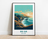 Discover Big Sur California and explore the world from your walls with a travel poster that brings adventure to your home. Big Sur California Beach Illustration Print is a high-quality, vintage-inspired print that is a perfect addition to your collection of travel places.