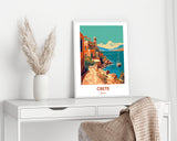 Discover Crete, Greece and explore the world from your walls with a travel poster that brings adventure to your home. Illustration Print is a high-quality, vintage-inspired print that is a perfect addition to your collection of travel places.