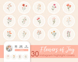 Perfect for trendy bloggers and influencers! 30 FLOWERS OF JOY Instagram Cover Highlights that style up and a modern vibe to your Instagram account